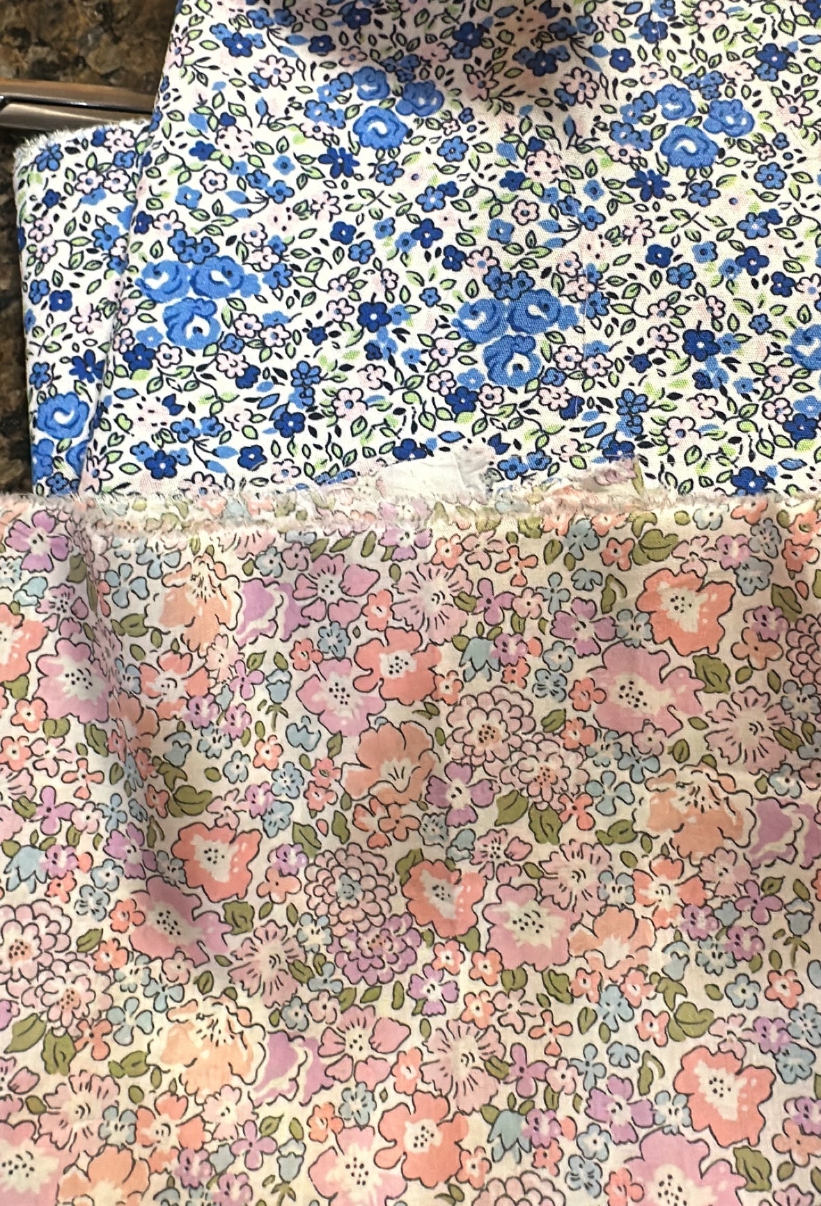 White thread thread - Blue floral fabric