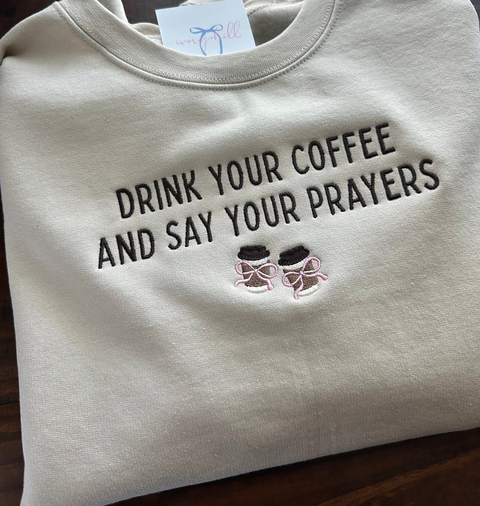 Drink Your Coffee and Say Your Prayers Embroidered Sweatshirt