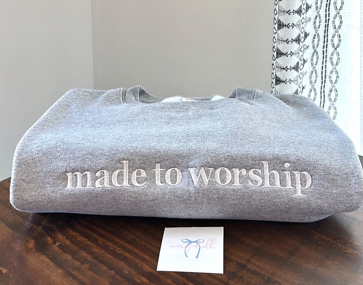Embroidered “made to worship” Crewneck – MADE TO ORDER