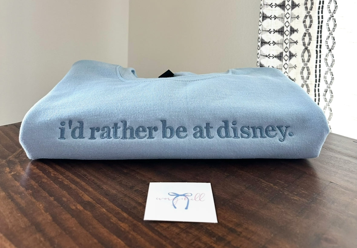 i’d rather be at disney. Light Blue Monochromatic Slogan sweatshirt