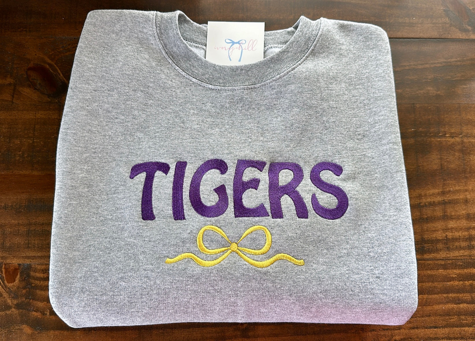 TIGERS Embroidered Bow Sweatshirt - Made To Order