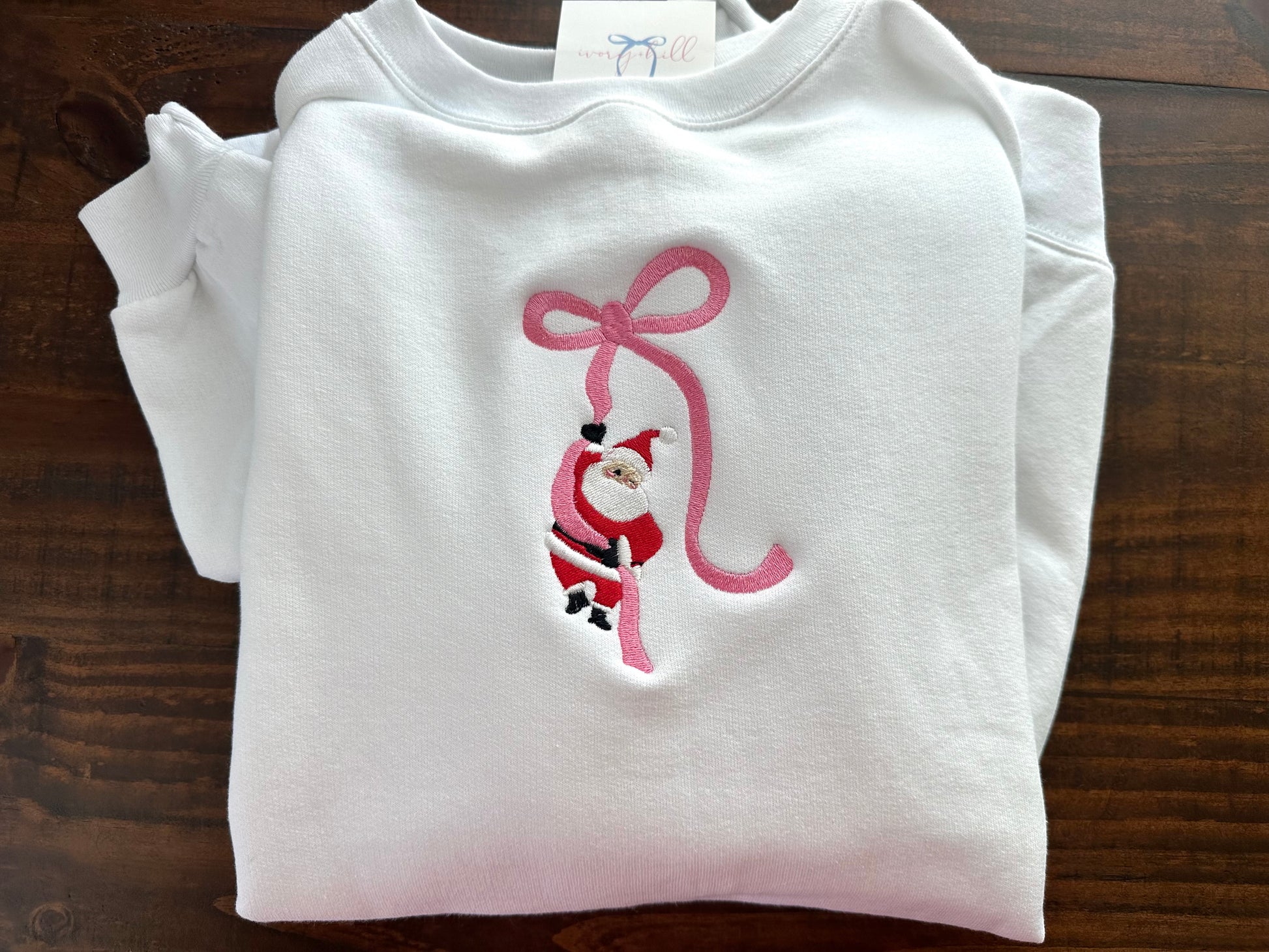 Santa Bow Embroidered Sweatshirt - Adult + kids